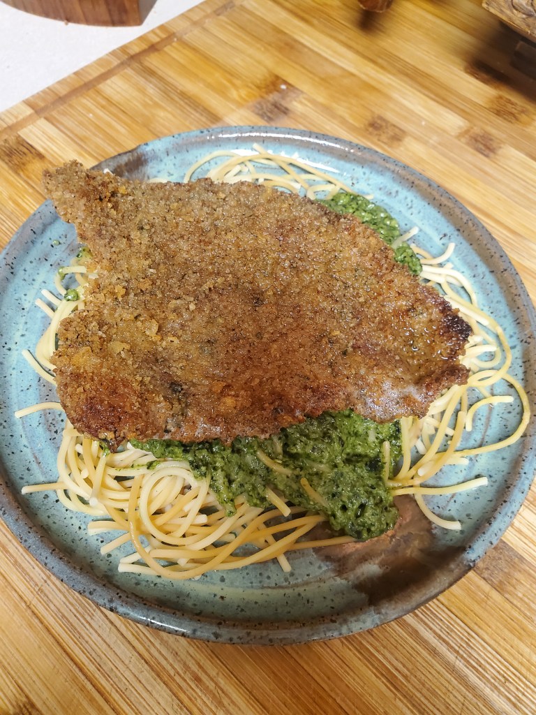 One response to “Peruvian-style Green Spaghetti with Crispy Beef Cutlet”